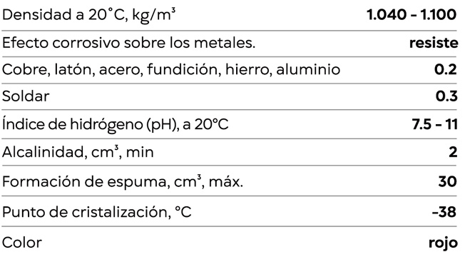 Está especialmente recomendado para sistemas de refrigeración fabricados en aluminio. Proporciona una protección fiable de las piezas del motor fabricadas en hierro, aluminio, cobre y acero. Elaborado a base de monoetilenglicol y aditivos especiales anticorrosivos, producido por BASF. No contiene nitritos, aminas, silicatos, boratos ni fosfatos.